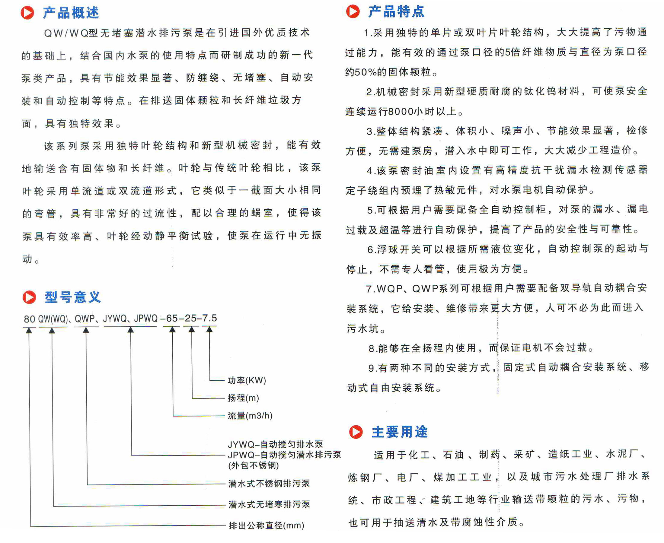 WQ-QW固定式-移動式潛水排污泵